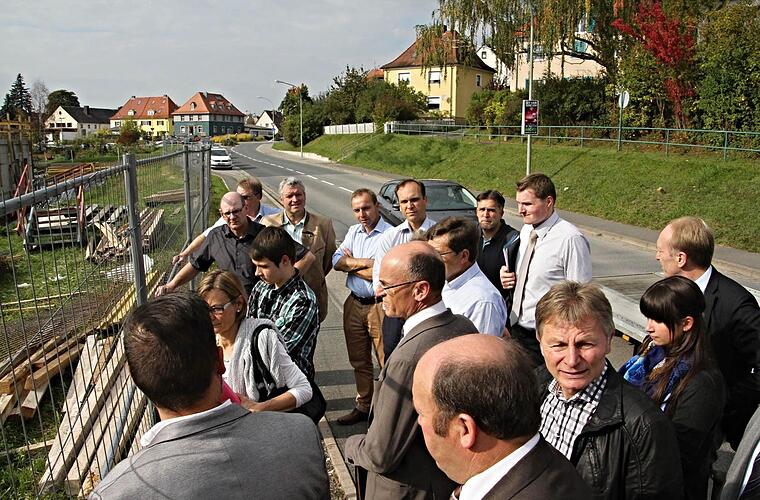 Deshalb war der Landrat mit seinen Bauausschussmitgliedern quasi nur "Zaungast." Durch den Absperrzaun konnte man sich ein Bild vom Ist-Zustand machen. Ralf Röckelein-Sarrè vom Hochbauamt des Landratsamtes erläuterte vor Ort den Baufortschritt des Hallenbades. Insgesamt sei man recht gut im Zeitplan und wolle erreichen, dass die Baustelle vor Einbruch des Winters "winterfest" gemacht werden kann, was auch bedeute, dass das Dach schon erstellt ist. Konrektorin Luise Pannek von der Realschule freute sich das Gremium des Bauausschusses im Haus zu haben und hob die einvernehmliche Zusammenarbeit bei der Planung des Schulanbaues mit dem Landratsamt hervor.