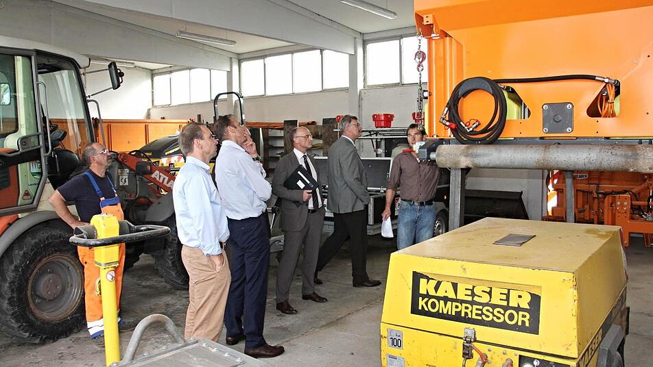 Hubert Schramm, stellvertretender Leiter des Tiefbauamtes des Landkreises, empfing den Kreisausschuss zusammen mit Straßenwärter Bernd Keicher am Kreisbauhof Ebern. Schramm informierte das Gremium, was demnächst zum Erhalt oder zur Verbesserung im Kreisbauhof an der Sandhofer Straße ansteht. So seien in verschiedenen Hallen die Bodenbeläge zu erneuern oder auszubessern. Probleme seien auch bei der Heizanlage zu erwarten, zudem sollte eine Außendämmung ins Auge gefasst werden.