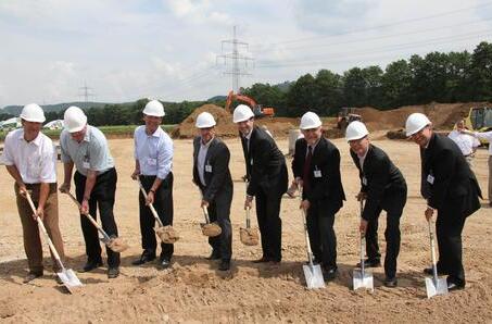 Mit dem offiziellen ersten Spatenstich und der anschließenden Grundsteinlegung startete der Bau einer neuen Logistik-Halle für den Scheßlitzer Verpackungs-Hersteller Cebal. Dabei griffen die Herren in den dunklen Anzügen nicht nur zum Spaten, sondern anschließend auch zur Maurerkelle und mauerten den Grundstein.