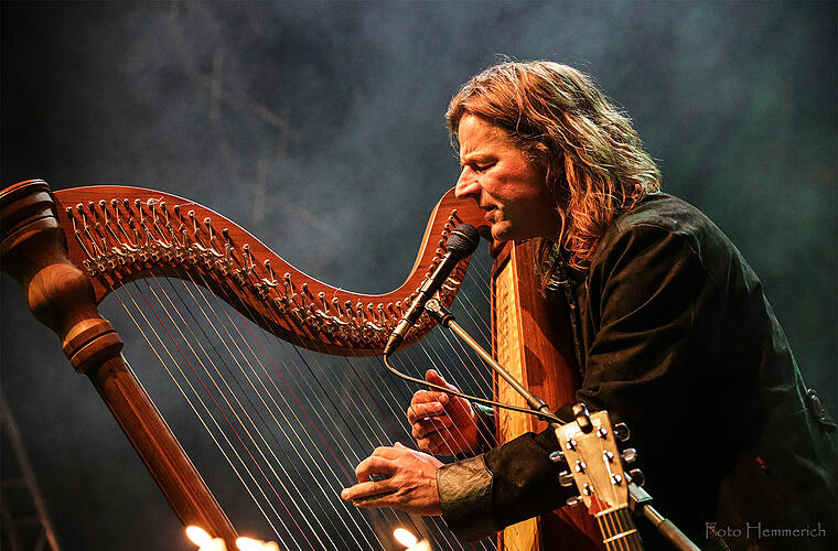 Dazu schöpft er tief aus dem Brunnen keltischer Musiktradition – ziselierte Harfenklänge, eine druckvoll gespielte Gitarre und der ausstrahlungskräftige Bariton des „neuen Meisters des Folk“ lassen innere Bilder mit Landschaften voll Weite und Schönheit entstehen. So entsteht eine Klangwelt zum Träumen und Hoffen, zum Aufstehen und Mutmachen.