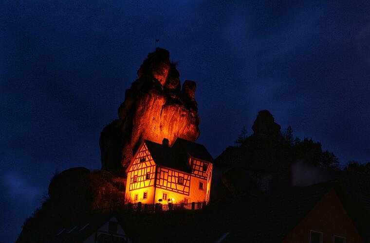Laut dem Magazin wird der kleine fränkische Ort "von bizarren Felsen" umgeben. In der Übersicht wird vor allem von den besonderen Felsformationen geschwärmt, die zwischen den Fachwerkhäusern des Ortes in die Luft ragen. "Wie gemalt", beschreibt das Reiseportal diese spektakuläre Szenerie, die auch Felsburg genannt wird.