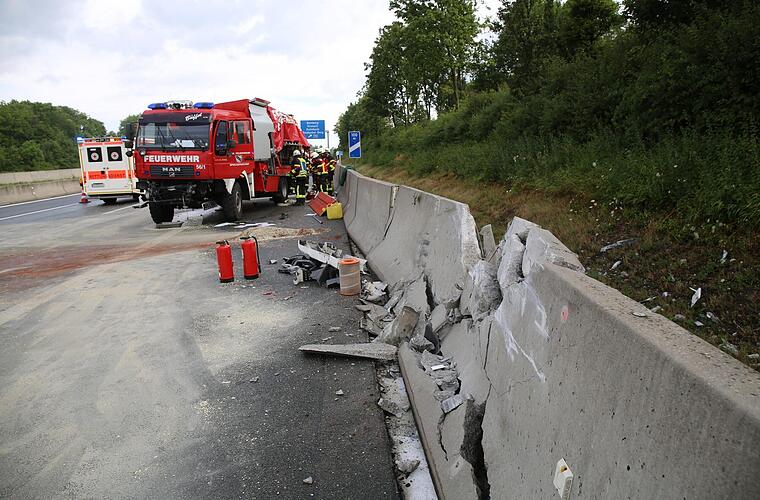 Am Sonntagvormittag ist ein Feuerwehrauto auf der A9 in Oberfranken verunglückt. Der Lastwagen krachte in die Betonleitplanke.