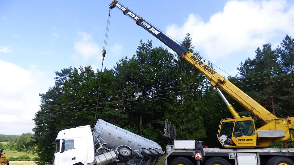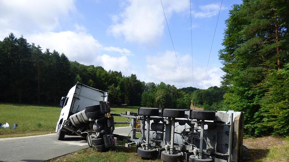 Im Landkreis Bayreuth ist am Mittwoch ein beladener Sattelschlepper umgekippt. Der Totalschaden beläuft sich auf 100.000 Euro.