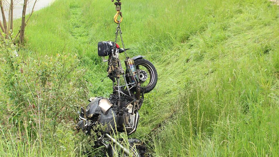 Sein Motorrad, das im Graben landete, ging in Flammen auf. Das bestätigte die Polizei Bayreuth Land auf Anfrage von inFranken.de. Weiter heißt es, sei die Identifikation des Fahrers vorerst nicht möglich gewesen. Das Nummernschild des Fahrzeuges sei durch das Feuer so stark beschädigt worden, dass es nicht mehr zu erkennen war.