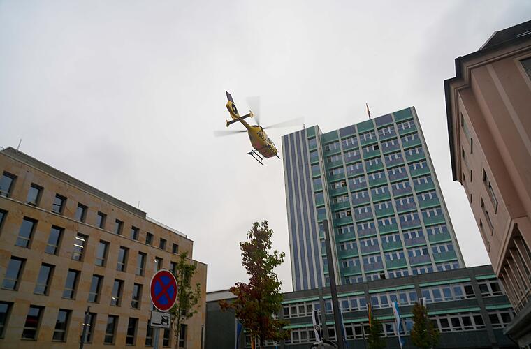 Spektakulärer Einsatz in Bayreuth: Ein Rettungshubschrauber musste am Montag direkt vor dem Rathaus landen.