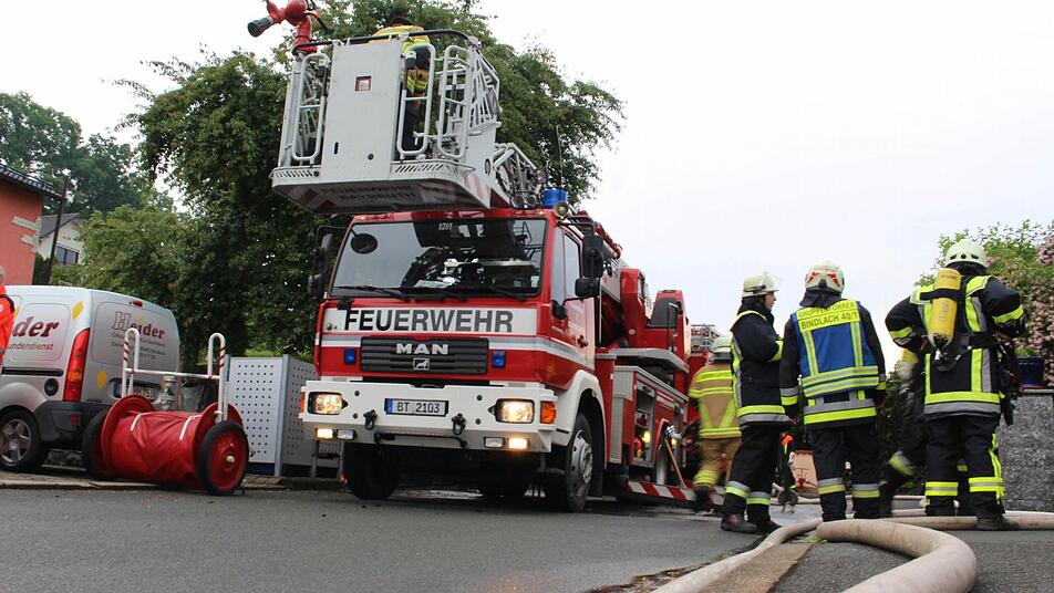 Ein brennender Dachstuhl und überschwemmte Straßen: Die Feuerwehren im Landkreis Bayreuth hatten am Sonntag alle Hände voll zu tun.