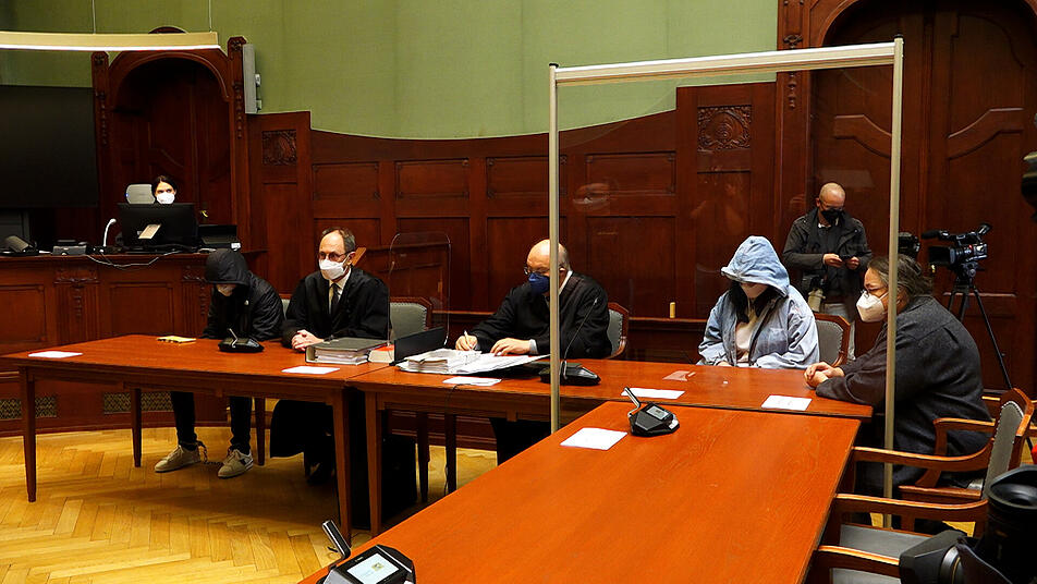 Die Gesichter der beiden Angeklagten sind zunächst nicht zu erkennen. Tief hat das 17 Jahre alte Mädchen die Kapuze ihrer hellblauen Jacke ins Gesicht gezogen, außerdem trägt sie eine FFP2-Maske. Auch der 18-Jährige hat sich eine Kapuze aufgesetzt. Oberstaatsanwalt Daniel Götz fasst in wenigen Minuten zusammen, was den beiden vorgeworfen wird: Sie sollen die Eltern des Mädchens umgebracht haben. Zugestochen haben soll der 18-Jährige. Zur Rolle der Tochter heißt es: "Die Angeklagte hasste ihre Eltern und wollte sie tot sehen." Vor dem Landgericht Bayreuth hat am Mittwoch der Prozess um den mutmaßlichen Doppelmord von Mistelbach begonnen.