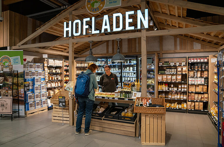 Am 28. Juli 2022 eröffnete das brandneue Edeka-Schneider-Supercenter in der Otto-Hahn-Straße in Bayreuth. Die Filiale ist die größte und modernste des Edeka-Schneider-Inhabers Patrick Schneider. Neben einem umfangreichen Supermarkt-Sortiment hat der Heimatunternehmer in seiner neuen Filiale eine Bühne für kleine Erzeuger geschaffen. Auf 20 Quadratmetern sind etwa 200 Produkte der Dachmarke Bayreuther Land untergebracht, einer gemeinsamen Initiative von Stadt und Landkreis Bayreuth, die es sich zur Aufgabe gemacht hat, Produzenten und Verarbeiter aus der Region zu stärken. „Der Hofladen im Supermarkt erhöht die Sichtbarkeit von Regionalprodukten, spart Verbrauchern lange Wege und stärkt heimische Betriebe.“ So erklärte Patrick Schneider damals seine Beweggründe. Ein Projekt in diesem Maßstab ist weit über die Region hinaus einzigartig und zieht bayernweit Aufmerksamkeit auf sich. Umso interessanter ist nun die Frage, wie sich der Hofladen jetzt, nach einem Jahr, entwickelt hat. Das Fazit von Heimatunternehmer Patrick Schneider: "Anders als in anderen Bereichen verweilen die Kunden im Hofladen sehr viel länger. Sie interessieren sich für die Produkte, informieren sich und kaufen. Der Umsatz ist von Anfang an ungebrochen gut."