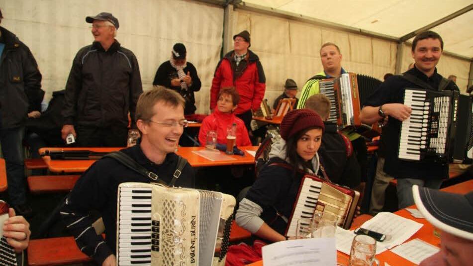 Ein Akkordeonspieler pro Höhenmeter des Anstiegs zum 90-jährigen Bestehen des Asenturms in Bischofsgrün: Das war das ehrgeizige Ziel, das sich die vier Ochsenkopfgemeinden im Rahmen des ersten Gipfelfestes gesteckt hatten.