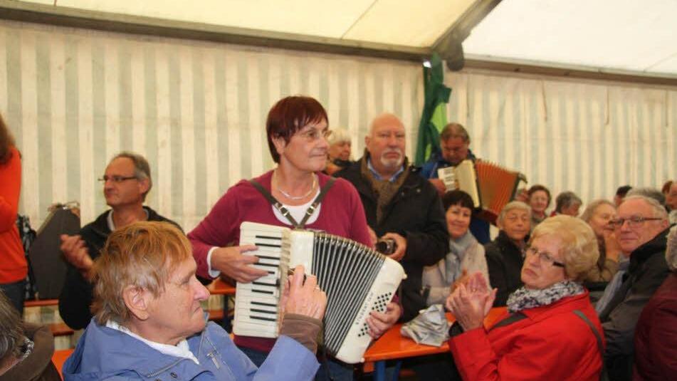 Die begeisterten Akkordeonspieler, die gekommen waren, spielten nicht nur die drei geforderten Lieder, sondern improvisierten und sorgten im Festzelt auf dem Gipfel für gute Unterhaltung. Und das Publikum sang bei Evergreens wie "Schön ist die Liebe im Hafen" oder Schrammelmusik der schönsten Art wie "Wien bleibt Wien" kräftig mit. Auswendig und ohne Noten und aus einem oben auf dem Gipfel ausgeteilten Notenbüchlein erklangen im Festzelt, das schier aus allen Nähten platzte, immer wieder neue Melodien. Die Menschen klatschten und sangen lautstark mit.