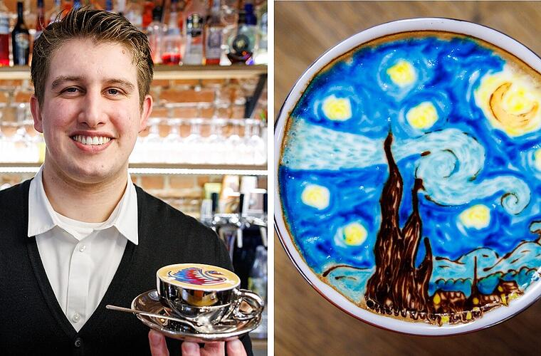 Bei Kaffee wird Francesco Bozzato aus Bayreuth zum Künstler - und der Milchschaum zu seiner Leinwand. Der Mitarbeiter der Bayreuther Cafébar 8otto Grammi in der Maximilianstraße kreiert all diese Motive in Farbe auf den Cappuccino. Seine Videos in den sozialen Medien erzielen regelmäßig viele Tausend Aufrufe - und dem Café seiner Familie mittlerweile auch Gäste aus dem Ausland, wie der 23-jährige Bozzato berichtet.