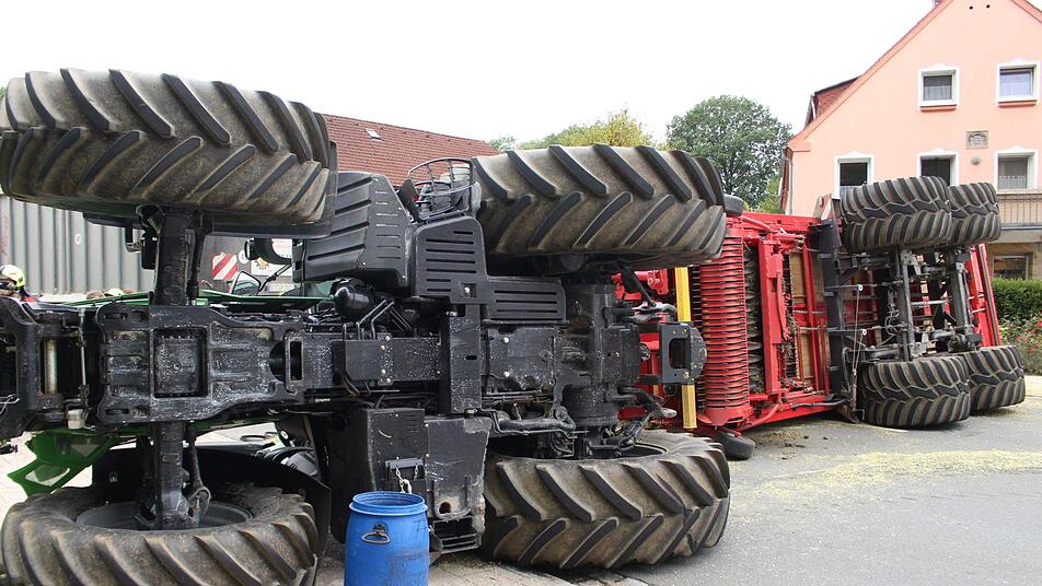 Traktor gerät in Hummeltal (Kreis Bayreuth) ins Schlingern und kippt um: Ein 25-jähriger Traktorfahrer war am Montag (16. September 2019) mit seinem Gespann auf der Staatsstraße 2163 in Richtung Pottenstein unterwegs, berichtet die Polizei. Auf Höhe der Mistelgauer Straße kam der mit Mais beladene Anhänger ins Schlingern und kippte samt Traktor um. Die Ladung landete auf der Straße.