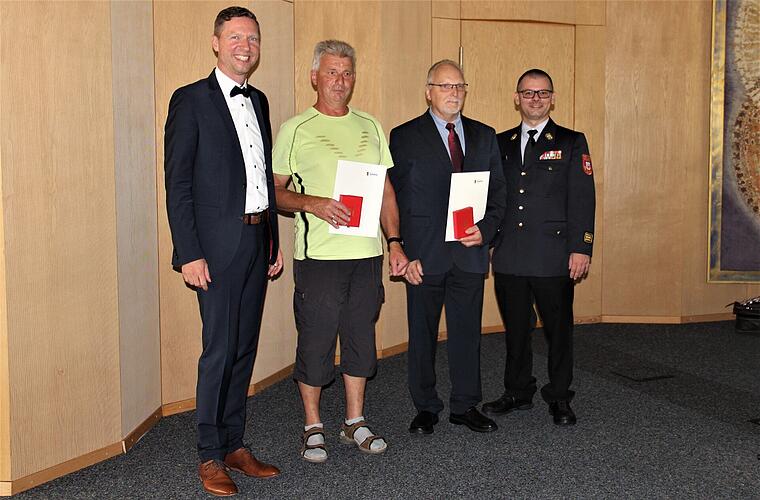 Beim Kreisempfang im Landkreis Bayreuth wurden Rainer Hammon und Erwin Krug ausgezeichnet. Die beiden erhielten das Deutsche Feuerwehr-Ehrenkreuz in Bronze für ihre Verdienste.