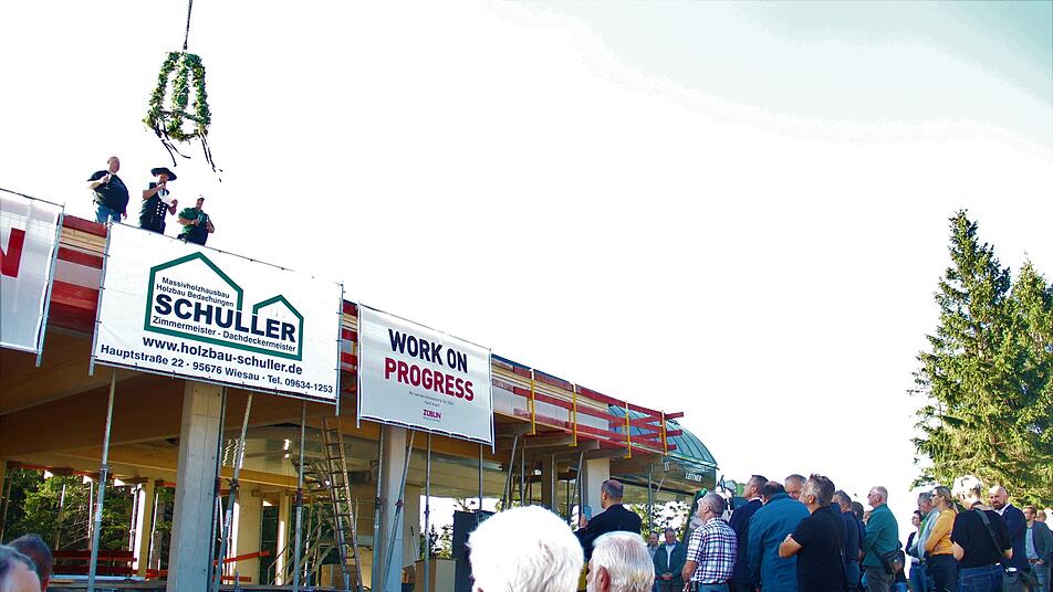 "Am Donnerstag, 21. September 2023, konnte im Beisein von Staatsminister Hubert Aiwanger, Regierungspräsident Florian Luderschmid, Bezirkstagspräsident Henry Schramm, Landrat Florian Wiedemann sowie der Landtagsabgeordneten Rainer Ludwig, Tim Pargent und Martin Schöffel und zahlreichen weiteren Gästen an der gemeinsamen Bergstation der zukünftigen beiden Kabinenbahnen für die Seilbahn Nord Richtfest gefeiert werden." Wie das Landratsamt Bayreuth in folgender Pressemeldung berichtet, liegt die höchstgelegene Baumaßnahme in Franken gut im Zeitplan, die Eröffnung ist für den 22. Dezember anvisiert. Ein Jahr später soll auch die Seilbahn Süd fertiggestellt sein und ihrer Bestimmung übergeben werden.