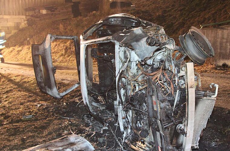 Auto fängt Feuer Durch den Unfall verteilten sich sämtliche Gepäckstücke über die aufgerissene Heckklappe aus dem Fahrzeug und der total demolierte Wagen fing sofort Feuer, berichtet die Polizei weiter. Der Fahrer, der sich alleine im Auto befand, konnte sich selbständig aus dem Wrack befreien und ergriff umgehend die Flucht. Ein Bewohner des Anwesens, der auf den Unfall aufmerksam geworden war und Hilfe leisten wollte, sah die Person noch flüchten und verständigte die Einsatzkräfte. Trotz des sofortigen Eingreifens, konnte die Feuerwehr ein Ausbrennen des Audi im Zeitwert von geschätzten 20.000 Euro nicht mehr verhindern. Die Flammen drohten auch auf das daneben stehende Anwesen überzugreifen.
