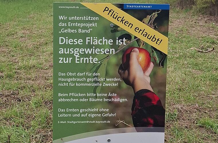 Damit es nicht zu Verwechslungen mit privaten Obstbäumen kommt, hat das Stadtgartenamt an den Flächen entsprechende Hinweistafeln aufgestellt. Hier gilt: Pflücken erlaubt, aber bitte ohne Leiter und nur für den häuslichen Bedarf.