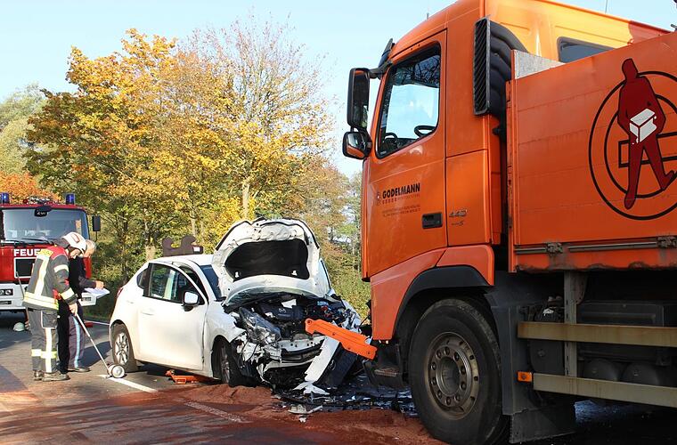Bei dem Unfall wurde die Autofahrerin schwer verletzt, wobei jedoch keine Lebensgefahr besteht. Der Lkw-Fahrer zog sich mittelschwere Verletzungen zu.