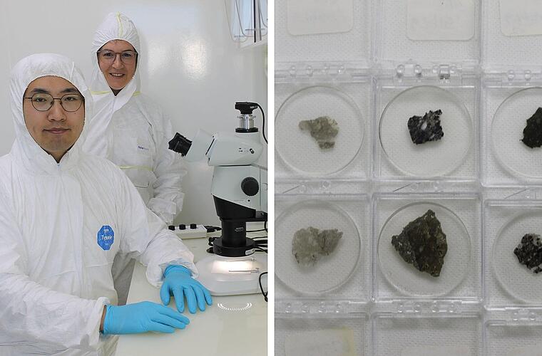 Dem von ihr geleiteten Forschungsteam am BGI gehört auch Ran Zhao M.Sc. an. Er hat an der Universität Bayreuth den Masterstudiengang "Experimental Geosciences" absolviert und nimmt nun im Rahmen seiner Doktorarbeit an den Analysen der Gesteinsproben teil. Die Untersuchungen werden sich auch auf die Analysen von Mondgestein erstrecken, das in Form von Meteoriten auf der Erde eingeschlagen ist. Mondmeteoriten liefern Stichproben von Gestein an anderen Orten auf der Mondoberfläche. Ihre chemischen und physikalischen Eigenschaften sind jedoch während ihres Eintritts in die Erdatmosphäre und infolge der Verwitterung auf der Erde in den letzten Zehntausenden von Jahren – bis zu ihrer Entdeckung in der Sahara-Wüste – stark verändert worden. Daher können sie nicht mehr als frisches Mondmaterial angesehen werden.