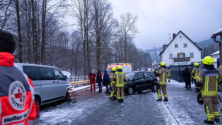 Familien werden nach Autounfall in Warmensteinach gemeinsam in Klinik transportiert - Feuerwehr sperrt Straße komplett