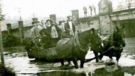 (Fortsetzung vom 6. Juli): Die ganze Stadt war auf den Beinen, um sich das Schauspiel anzusehen, bei dem es an ergötzlichen Bildern nicht fehlte. Mehrfach sah man Radfahrer in den Fluten verschwinden, um nach einem Vollbad wieder aufzutauchen. Kraftwagen blieben an verschiedenen Stellen im Wasser stecken und mussten mit "Pferdekraft" herausgezogen werden. Bald entwickelte sich ein lebhafter Wagenverkehr im Bahnhofsviertel und selbst kleine Handwagen wurden zum begehrten Verkehrsmittel.