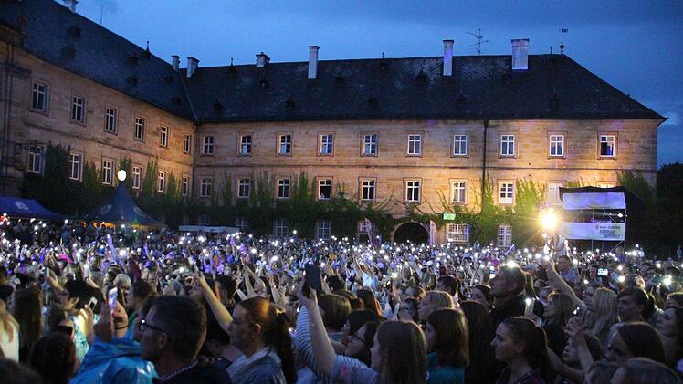 Welche Massen? 2500 im ausverkauften Schlosshof, die Mehrzahl davon Kinder und sehr junge Jugendliche, verzückte Mädels. Schon früh kuschelte sich alles zusammen zum großen heimeligen Ganzen, die Arme und Ärmchen winkend im Rhythmus, Tausende von Handy-Lämpchen funkelten im Schlosshof wie die Sternchen. Was für ein Anblick.