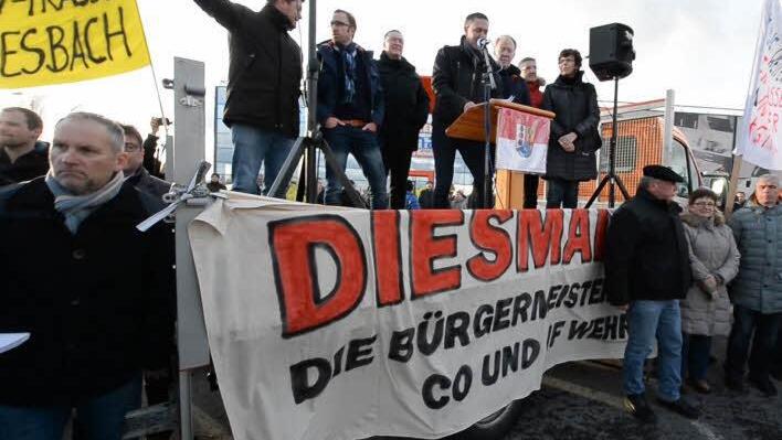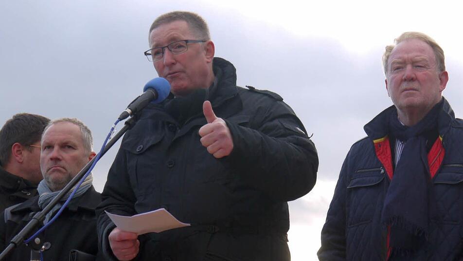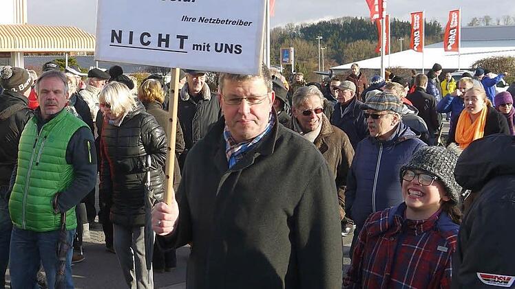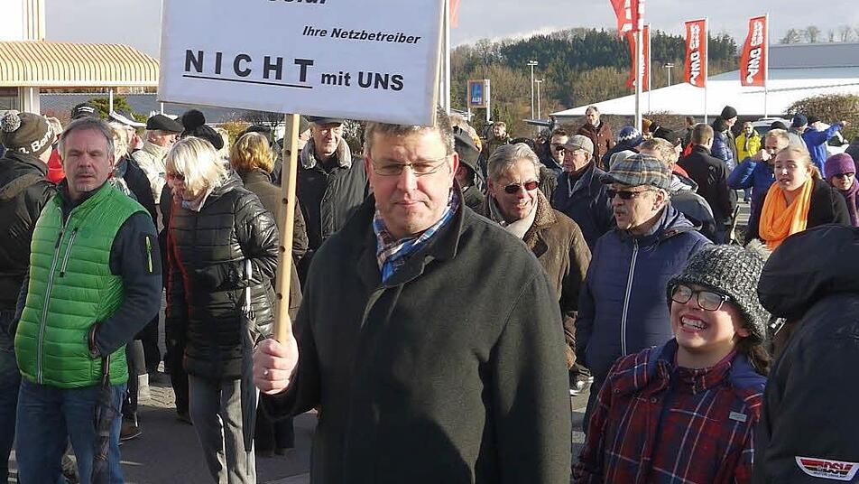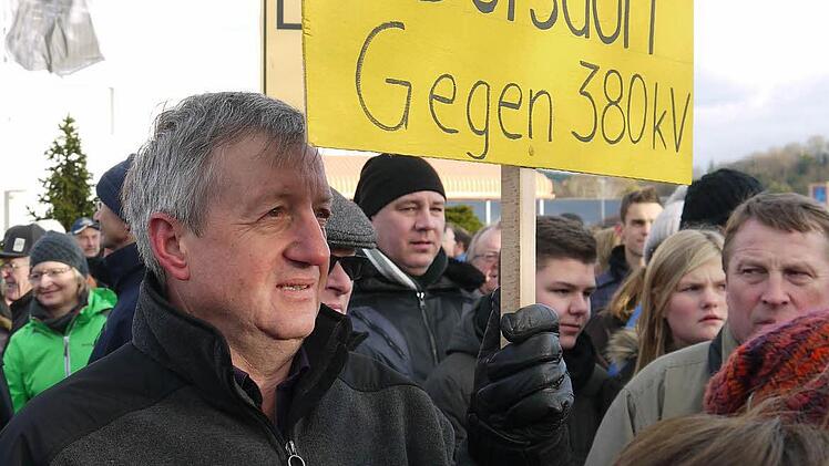 Der einzige Redner, bei dem deutlich Pfiffe aus der Menschenmasse zu vernehmen waren, war Hans Michelbach (CSU). Dennoch zeigte sich der Bundestagsabgeordnete überwältigt von der großen Teilnehmerzahl und sicherte deshalb zu, dieses "kraftvolle Signal" mit in die entscheidenden Gespräche für den Netzentwicklungsplan zu nehmen. Dass Michelbach Kritik aus dem Volk zu hören bekam, lag wohl auch daran, dass er sich den Bau der umstrittenen Trasse "P 44" mit Erdverkabelung im westlichen Landkreis unter Umständen vorstellen könnte. Dafür bekam der Abgeordnete auch noch einmal kritische Worte vom Dörfles-Esbacher Bürgermeister Udo Döhler (UBV) zu hören. "Wer denkt, dass die Erdverkabelung ein Segen ist, der täuscht sich", sagte Döhler mit Verweis auf die vegetationslose 60 Meter breite Trasse, die selbst dieser Übertragungsvariante in der Landschaft übrig bleiben würden.
