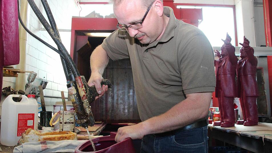 "Die Hände werden separat gefertigt. Anfangs waren sie am Oberkörper dran, aber da gab es Probleme. Dass hat uns wieder mindestens eine Woche gekostet", erklärt Thomas Messner. Der Chef der Neustadter Firma Otto Müller ist im Stress. Ihm sitzt der Künstler Ottmar Hörl, der Schöpfer der Wagner Figuren und kreativer Kopf, hinter der Ausstellung mit den 500 Figuren in Bayreuth, im Nacken.