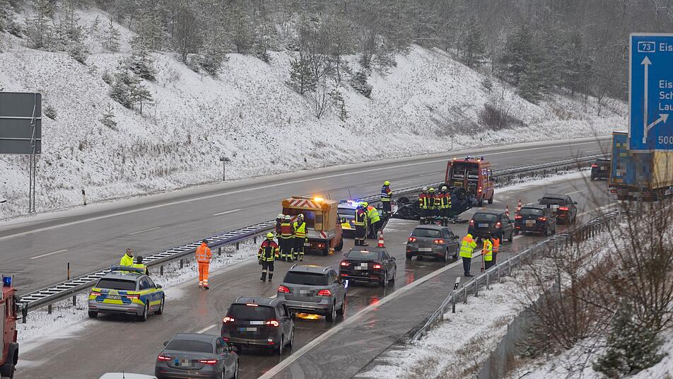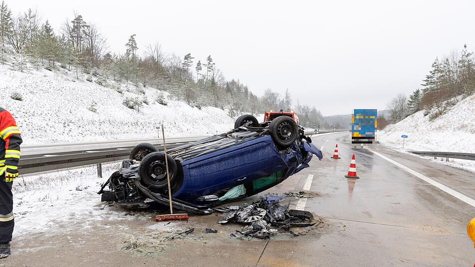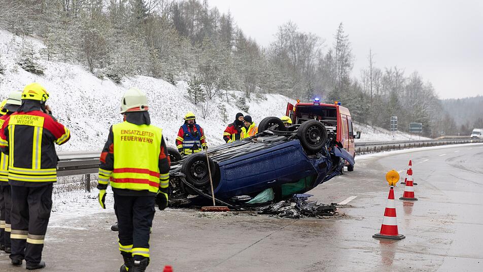 Eine 23-Jährige verlor am Dienstagvormittag (7. März 2023) auf der A73 bei Lautertal (Landkreis Coburg) wegen Glätte die Kontrolle über ihr Fahrzeug und überschlug sich mehrfach. Doch sie hatte großes Glück - denn ein couragierter Ersthelfer griff ein.