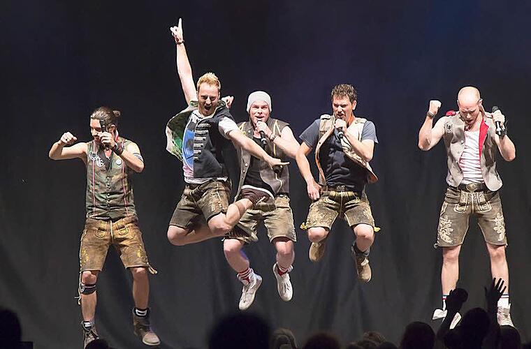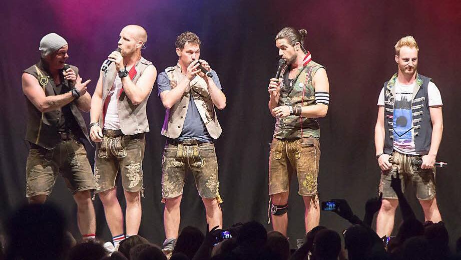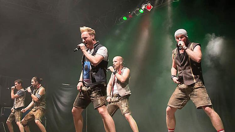Voxxclub - das ist eine clevere Mischung aus effektvoller Choreografie und zumeist lautstarkem und geradlinigem (A-cappella-)Gesang, die längst schon ihre Wiesn-Tauglichkeit bewiesen hat. Und was auf dem Oktoberfest funktioniert, verfehlt an diesem Abend auch im Tambacher Schlosshof seine Wirkung nicht. Von "Ewige Liebe" bis "Ziwui, Ziwui" - das Publikum lässt sich mühelos animieren zum Mitklatschen und Mitsingen.