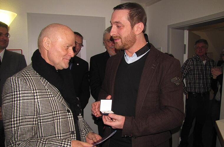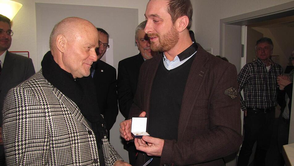 Oberbürgermeister Tessmer zeichnete Schwämmlein mit der Medaille "Die Stadt Coburg dankt" in Silber aus. Auch das Diakonische Werk entließ seinen Mitarbeiter Schwämmlein nicht undekoriert in den so vermuteten "Un-Ruhestand". Vorstand Matthias Emmer zeichnete ihn mit dem Kronenkreuz in Gold, der höchsten Auszeichnung des evangelischen Wohlfahrtsverbandes, aus.