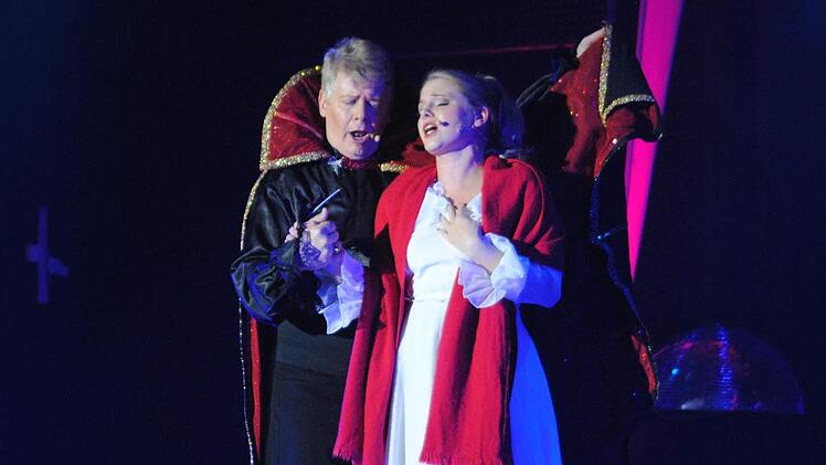 Am Ende aber wäre das alles nichts, könnten die Veranstalter nicht auf einen Pool hervorragender Sänger zurückgreifen. Diesmal waren der voll tönende Bariton Robert Wagner dabei, der vielseitige Michael Ewig, der vielversprechende Florian Albers, noch Musikstudent, der als Frank N Furter den strapsig-hautnahen Kontakt zum Publikum nicht scheut, sowie die vor allem rockig sehr überzeugende Tamara Peters. Und stimmlich allen voran Nadja Plattner mit ihrer engelhaft klaren, koloratursicheren Stimme. Die kennen wir doch! Aber ja, die Österreicherin stand auch schon bei der Sommeroperette in Heldritt auf der Bühne.