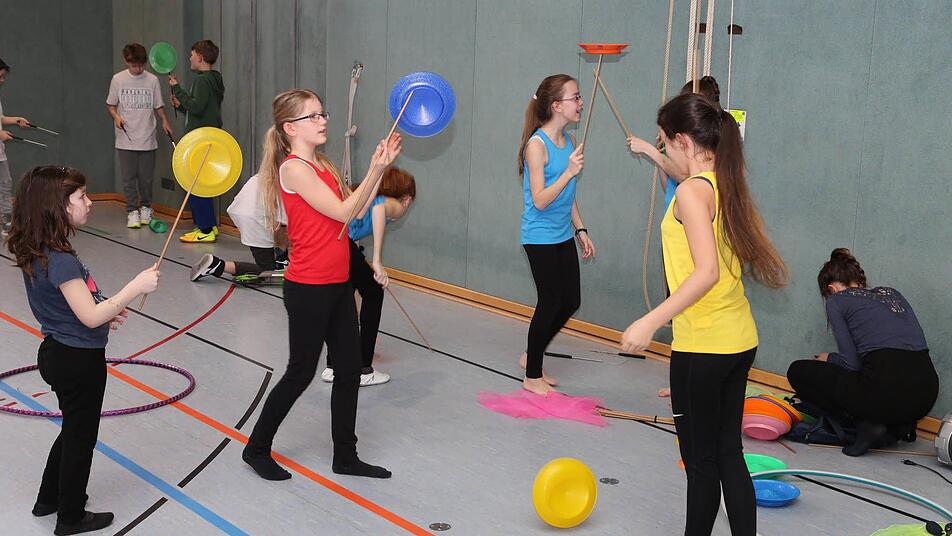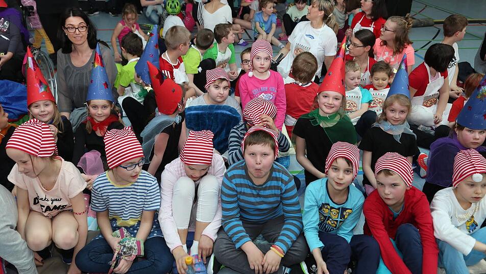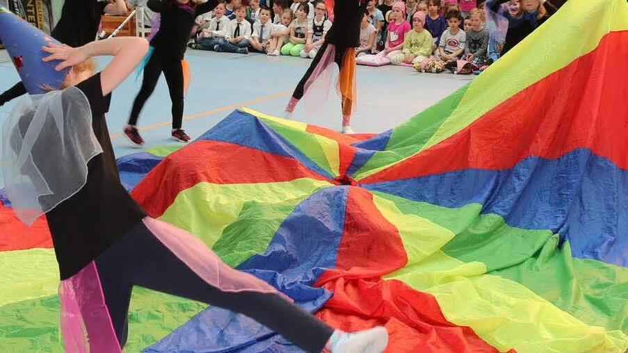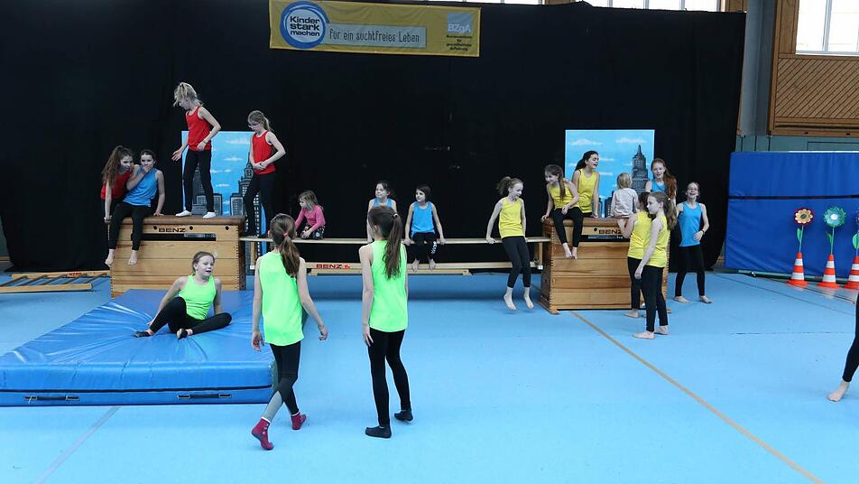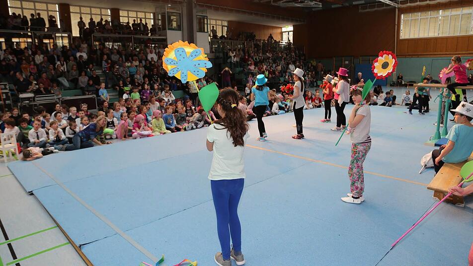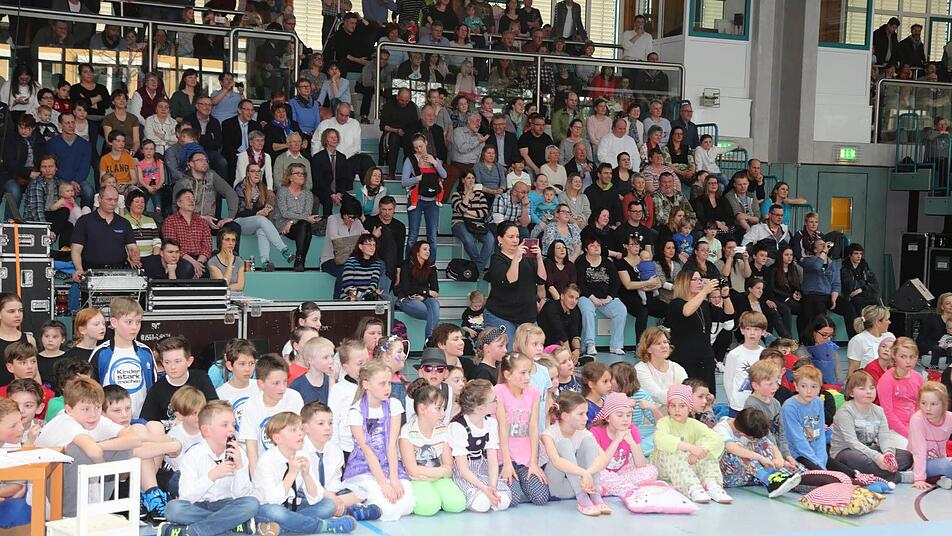 So viel los ist in der Pestalozzihalle in Coburg selten: 180 Kinder in zehn verschiedenen Gruppen zeigten eine fulminante Show mit Einlagen aus dem Kinderturnen, dem Tanzen und der Akrobatik. Hinzu kamen 700 Zuschauer, die ihre Kinder als kleine Künstler feierten. Die verschiedenen Gruppen kamen aus der Melchior-Franck-Grundschule, der Grundschule Ahorn, (beide in Kooperation mit der Mauritiusschule), der Grundschule Ketschendorf, dem Gymnasium Casimirianum, der SG Rödental, dem Coburger Kinder - und Jugendtheater und dem TV 48 Coburg.