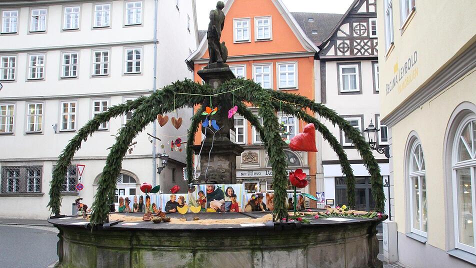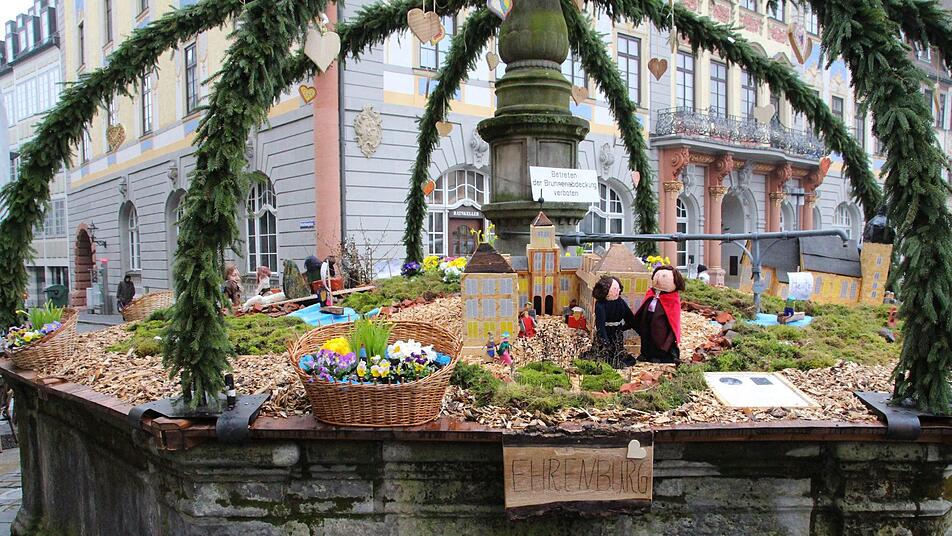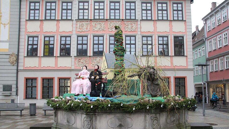 "Große Liebespaare" zieren die Straßen der Innenstadt. Zur Coburger Brunnenstraße haben Schulen und andere Einrichtungen sechs Brunnen geschmückt.