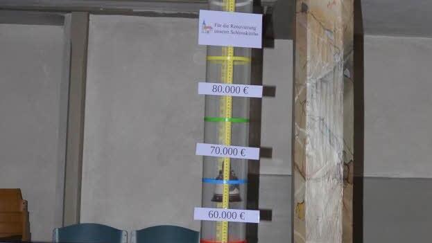 Obwohl die Gemeinde nur wenige Hundert Mitglieder zählt, wurde bereits eifrig für die Renovierung gespendet. Ein in der Kirche aufgestelltes Schauglas zeigt zurzeit einen Pegel von 40 000 Euro. Eine bemerkenswerte Leistung, doch der Eigenanteil der Gemeinde sieht nach Stand der Planung einen Betrag von 110 000 Euro vor. Dabei ist eine mögliche Deckensanierung gar nicht eingerechnet.