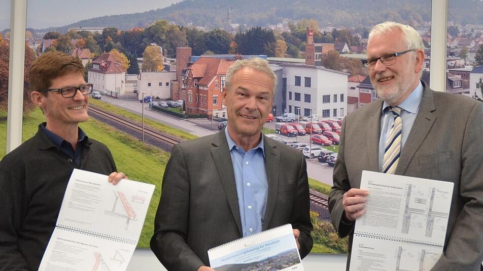 Im Altbau ist nicht viel zu machen, wenn es um energetische Sanierung und Barrierefreiheit geht - eine Meinung, die Architekt Jörg Wicklein oft zu hören bekommt. Dass in Wirklichkeit eine Menge möglich ist, selbst in denkmalgeschützten Häusern, zeigt der "Modernisierungskatalog für Neustadt", den Wicklein am Montag gemeinsam mit Oberbürgermeister Frank Rebhan (SPD) und Stadtwerkeleiter Armin Münzenberger präsentierte.