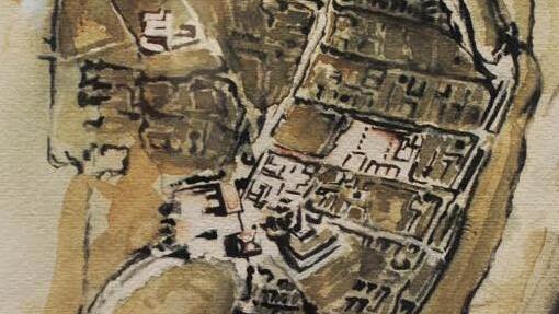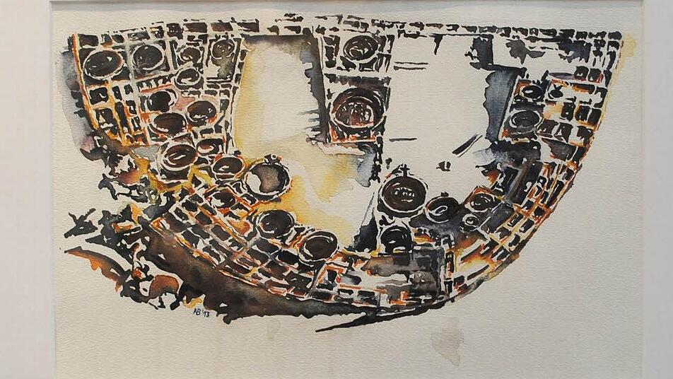 Der Coburger Künstler Benno Noll blickt im Westpavillon im Hofgarten, wo er seit einem Jahr ein öffentliches Atelier betreibt, mit intensiven Aquarellen auf die Überreste alter Kulturen.
