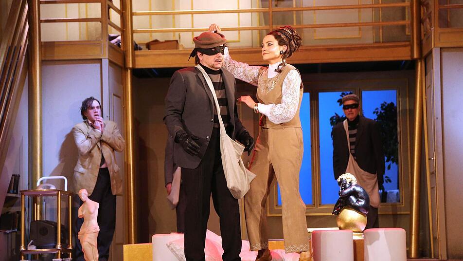 Und genauso bringt Coburgs Schauspieldirektor Matthias Straub diese Farce auf die Drehbühne des Landestheaters - als theatralisches Uhrwerk, das trotz der kurzfristigen Umbesetzung präzis tickt.