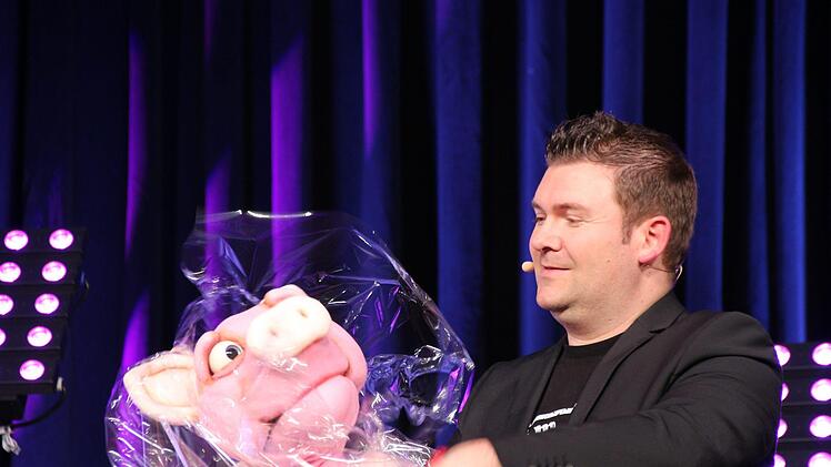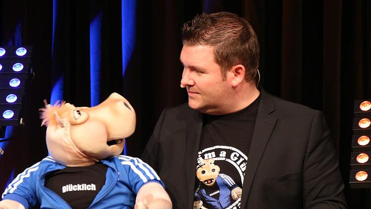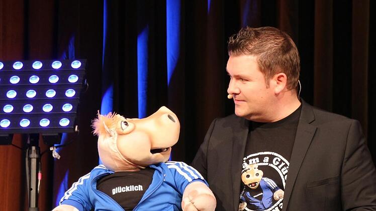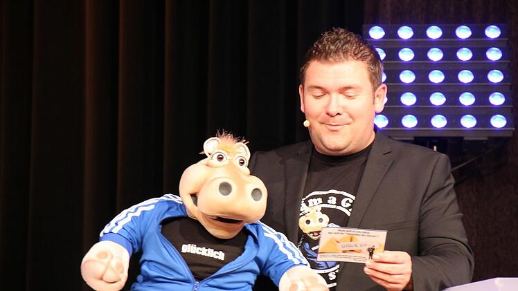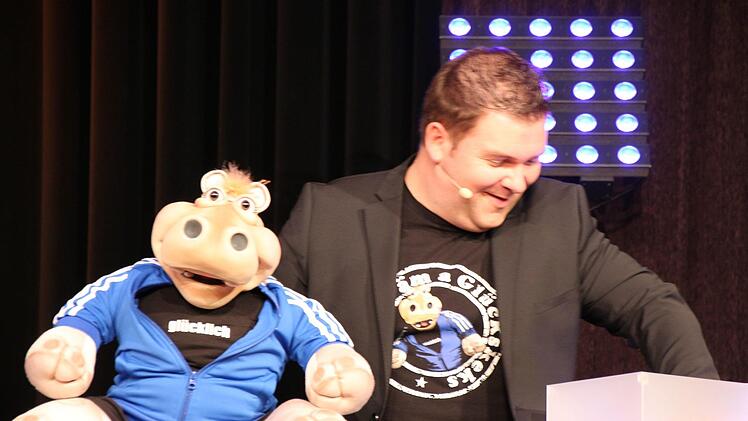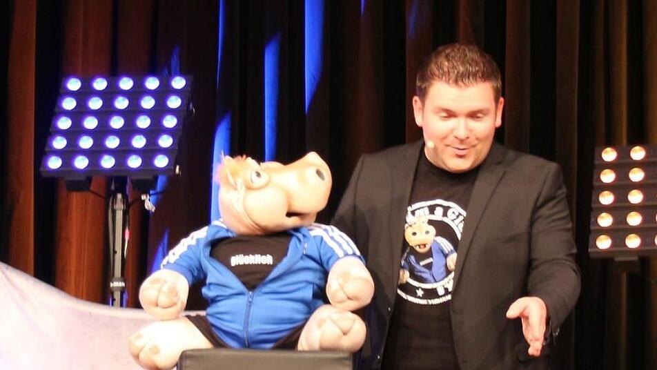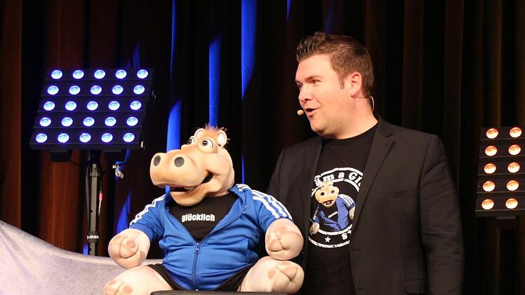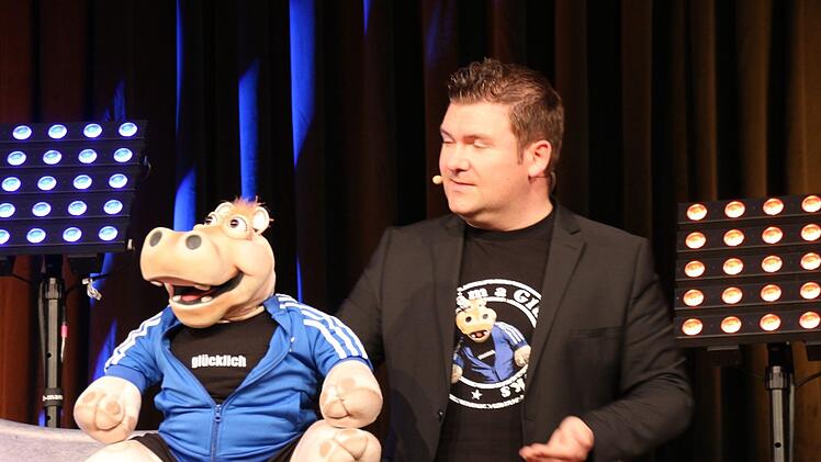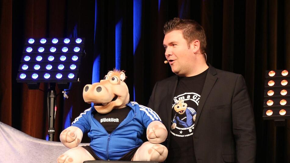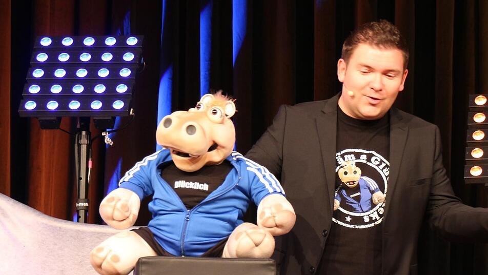 Das Bühnen-Nilpferd des tollen Würzburger Puppenspielers und Bauchredners Sebastian Reich ist richtig dick im Geschäft, auch in Coburg.