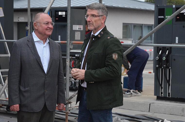 "Einige Fahrer haben angekündigt, dass sie das nutzen werden." Damit fallen Arbeitskräfte weg, mit denen Kaiser ein paar Jahr länger kalkuliert hatte. Auszubildende, die etwa mit 16 Jahren in den Betrieb kommen, dürfen erst mit 18 als Fahrer arbeiten. "Wenn wir Pech haben, fahren die ein Jahr, und gehen dann weg", erklärt Kaiser. Auch hier kann der Landkreis wenig steuernd eingreifen, musste Michael Busch einräumen. Doch bisher ist der Asphalt der Amo-Debus-Gruppe noch immer dort angekommen, wo er hin sollte. Und dass es Asphalt in den verschiedensten Farben bis hin zu farblos (natursteinfarben) gibt, das wunderte den Landrat dann schon.