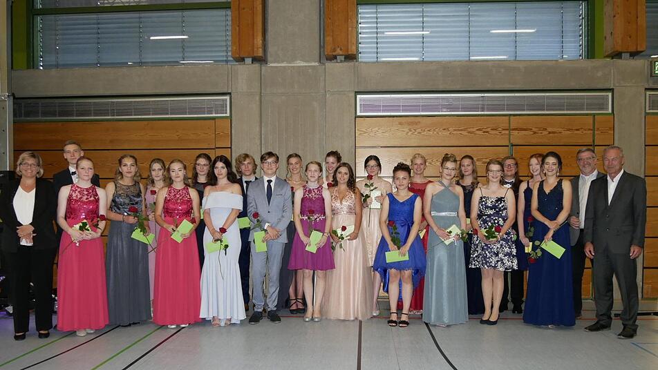 124 Absolventen verabschiedeten sich Freitagabend mit "rosigen" Abschlusszeugnissen und einer rauschenden Ballnacht in der Frankenhalle von ihrer Neustadter Realschulzeit, mit Zeugnissen und Blumen der Liebe. "Alle Mühen haben sich gelohnt und sind nun vom Erfolg gekrönt, davon 22 Mal mit