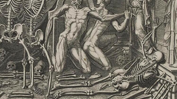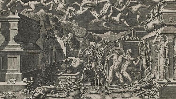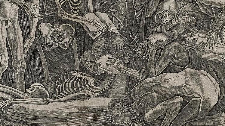 Dürers "Ritter, Tod und Teufel", diese Kombination ist uns noch einigermaßen vertraut. Sogar Christus haben diverse Künstler in die Vorhölle geschickt. Aber: Kunstvoll um schlafende Babys drapierte Totenschädel. Die sich sprunghaft entwickelnden Wissenschaft stochert im menschlichen Leib; den vielen Skeletten und Muskelmännern ohne Haut ist der Schrecken des Ungeheu erlichen anzusehen, das die Menschen damals im Umbruch zur Neuzeit erfasste. Skurriler Weise interessiert auch bei der Vergegenwärtigung der absonderlichsten Dämonen deren Anatomie bis ins Detail. Was sie durchaus noch bedrängender macht.Und dann die berüchtigten Hexenzüge. Da besitzen die Kunstsammlungen sogar eine große Druckplatte. Der ganze Motiv-Komplex ist gierig durchdrungen von sexuellen Fanta sien.