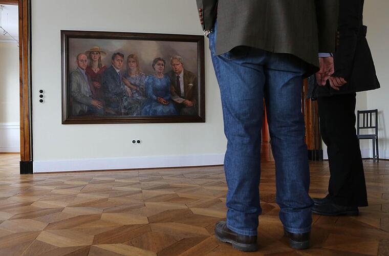 Wer ist die Hauptperson? Hubertus und Kelly, die nächste Generation, bilden das Zentrum des Bildes. Doch Prinzessin Carin, die Mutter, wirkt noch präsenter. "So sähe sie aus, wäre sie gesund", sagt ihr Gemahl. Sein Abbild blickt dem Betrachter aufmerksam entgegen: Der Blick eines Mannes, der viel gesehen hat im Leben. Und der den Tod fast schon vor Augen hatte. Eine spät erkannte Blutvergiftung bedrohte sein Leben, und die Folgen machten ihm lange zu schaffen. An der einen oder anderen Stelle hat diese Erfahrung auch seinen Blick auf die Dinge verändert.