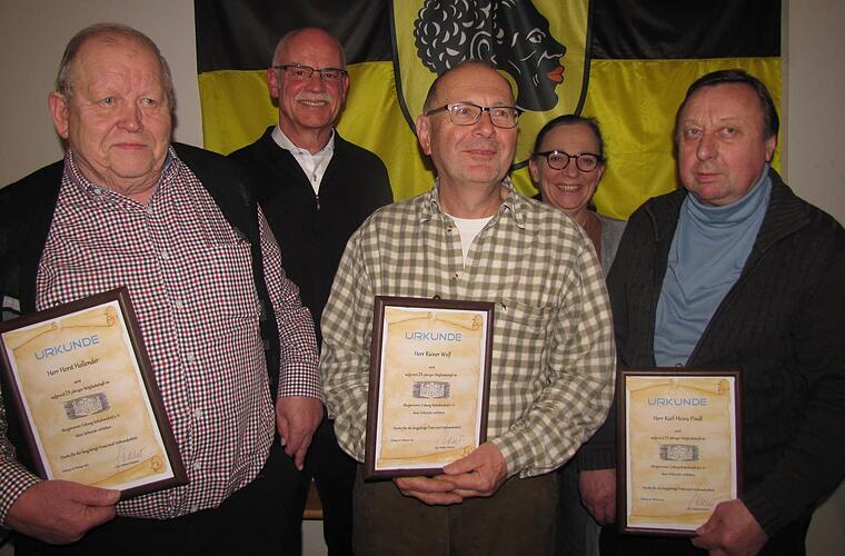 Einige Mitglieder gehören dem Bürgerverein Ketschendorf bereits seit 25 Jahren an: Horst Hollender, Rainer Wolf und Karl-Heinz Pindl erhielten Ehrenurkunde und Präsente zu ihrem Silberjubiläum.