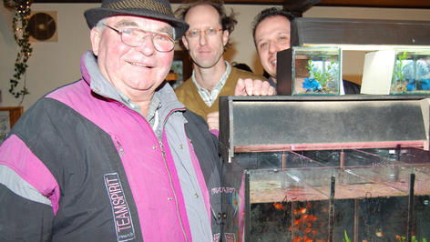 Hobbyzüchter fanden sich ein, um ihren eigenen Bestand zu erweitern, zu fachsimpeln oder das eine oder andere Interieur mit nach Hause zu nehmen. Über 50 verschiedene Zierfischarten und verschiedene Wasserpflanzen wurden ebenso angeboten, wie beim Aquaristik-Flohmarkt allerlei gebrauchtes Zubehör vom Thermometer bis zum vollständigen Aquarium nebst Abdeckung. Seit ein paar Jahren mit von der Partie sind auch die Aquarienfreunde vom Partnerverein Steinach im benachbarten Thüringen. Michael Zander konnte sich schon als kleiner Junge für Zierfische begeistern. Er züchtet hauptsächlich lebend gebärende Zahnkarpfen, wie Guppys, Schwertträger, Black Mollys, aber auch Welse und Skalare. Wer Zierfische züchtet, sagt er, hat diese Liebe zu den Wasserwinzlingen im Blut.