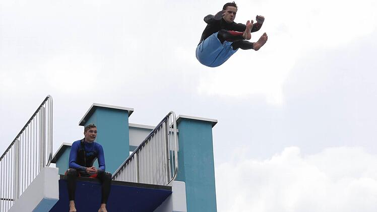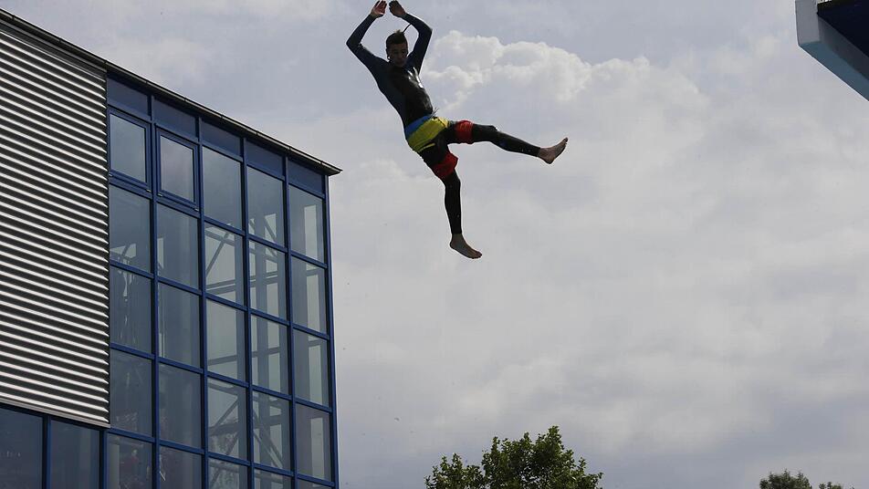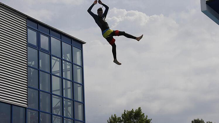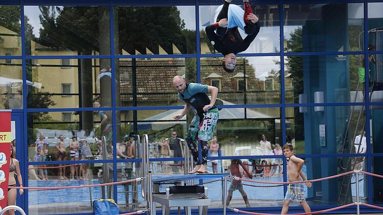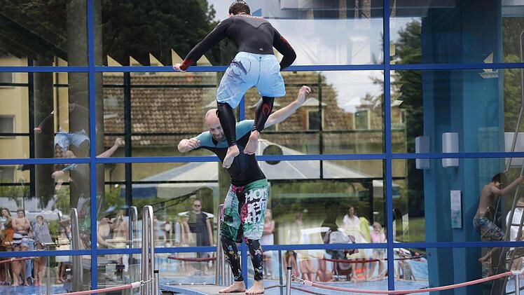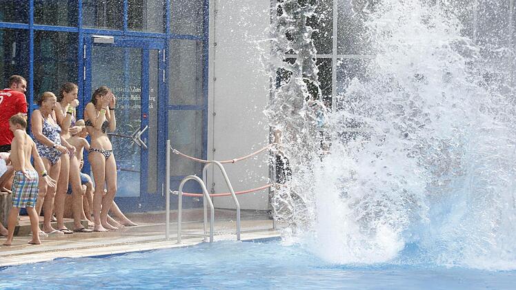 Während drinnen sich Arielle unter Wasser vergnügte, bereiteten sich draußen die Splah-Diver auf ihren großen Auftritt vor. Wie schon im vergangenen Jahr präsentierten die jungen Männer außergewöhnliche Sprünge und sorgten für jede Menge guter Laune und nasser Zuschauer am Beckenrand.