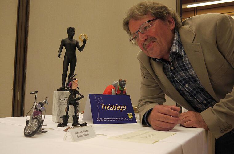 Dass gerade er als Einheimischer eine der in der Branche sehr begehrten Figuren mit nach Hause nehmen konnte, war für den 63-Jährigen zwar "ein bisschen komisch" - aber andererseits natürlich ein toller Erfolg. Dass Träger ein kreativer Kopf zeigt seine Vita: Von Beruf ist er Biologie-Modellmacher, darüber hinaus hat er schon für verschiedene Zeitungen Karikaturen gemalt. Nun ist er auch noch Kunstpreis-Träger, nachdem er seit drei Jahren Figuren für den Wettbewerb zum Neustadter Puppenfestival eingereicht hat.