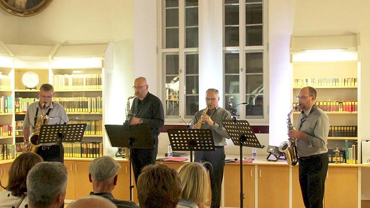 Wer sich in die Kellergewölbe hinab wagte, der konnte, im Angesicht der herzöglichen Büsten-Familie, die hier hinter dem Heizungskeller verwahrt wird, in die akustisch einnehmende Schwerelosigkeit der jazzigen Poesie des Andy Houscheid-Tri os eintauchen. Bei Leise am Markt ein frecher, sehr italienischer Liedermacher, im Staatsarchiv das feine Quadrosax in Gershwins Summertime... Man könnte so viel erzählen. Vom Comedy-Sarkasmus im Marstall mit Atze Bauer, dem musikalisch verrückten Renè Kraus und dem fränkischen Missmut in Person, Jörg Kaiser, ganz abgesehen. Denn eine "Lachnacht" war diese Kulturvöllerei auch noch.