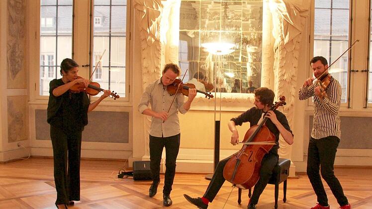 Und im Inneren überall Konzerthöhlen, -tempel, mitunter zum Bersten gefüllte Musiksäle mit fast 30 Bands, regionalen, aber auch wieder aufregenden Entdeckungen aus dem Überregionalen. So etwa das klassische Feuerbachquartett mit jungen Musikern aus Bayreuth und Nürnberg: Was in großen Rock- und Popsongs steckt, wenn sie Cello und Geigen anheimfallen, ist verblüffend und unter die Haut gehend. Da blicken Sie ganz schnell ins "Eye of the Tiger". Der Riesensaal der Ehrenburg war bei deren Darbietungen proppenvoll.