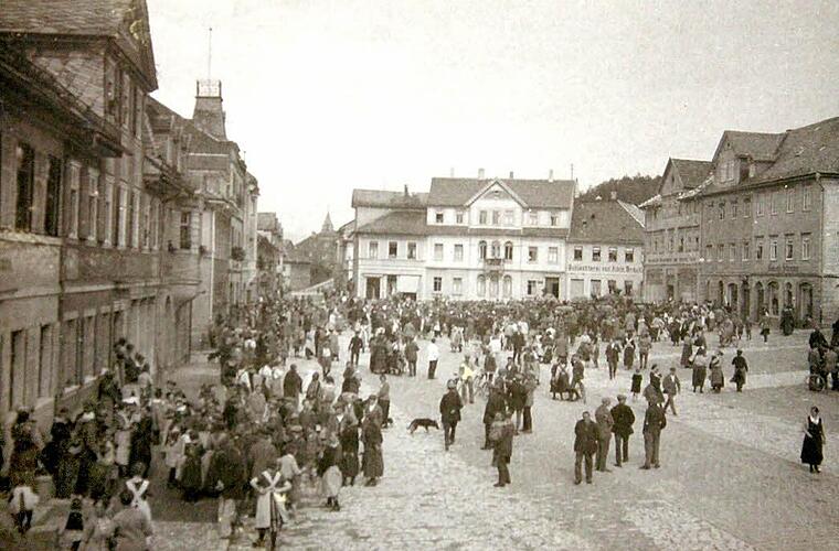 Über die sozialen Medien sind fotografische Dokumente aufgetaucht, die die Novemberereignisse 1918 in Neustadt zeigen. Die Fotografien, die offenkundig aus dem familiären Umkreis des früheren Ersten Bürgermeisters von Neustadt, Franz Braunschmidt (1901 bis 1910), stammen, zeigen die Kundgebung auf dem Neustadter Marktplatz am 14. November 1918.