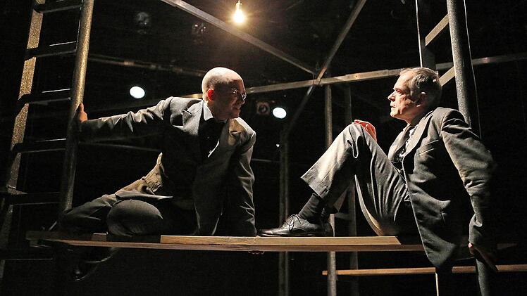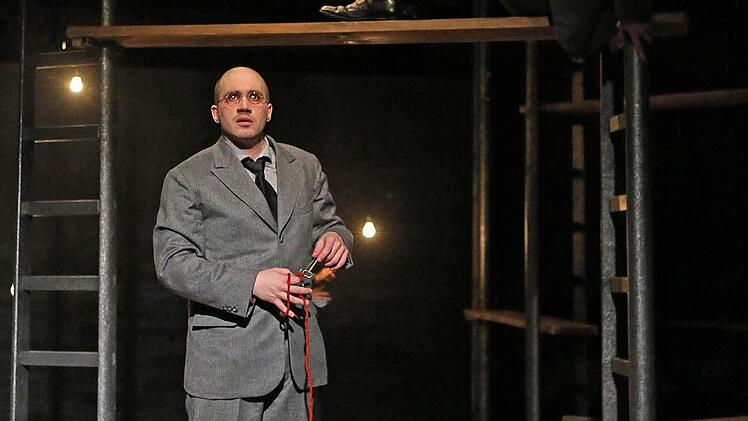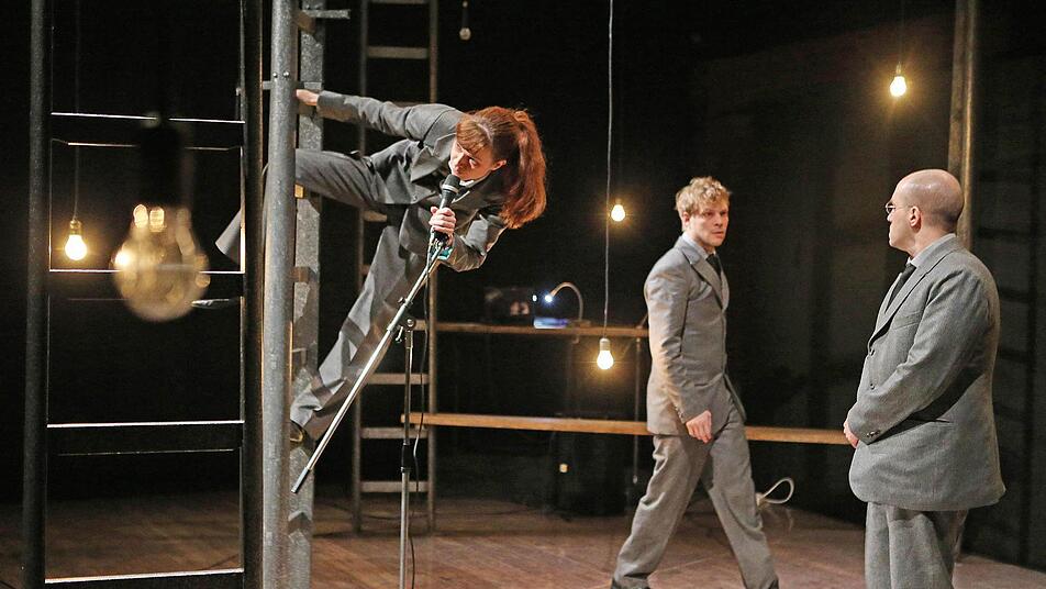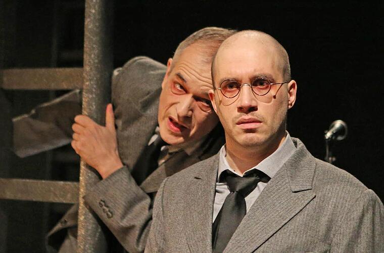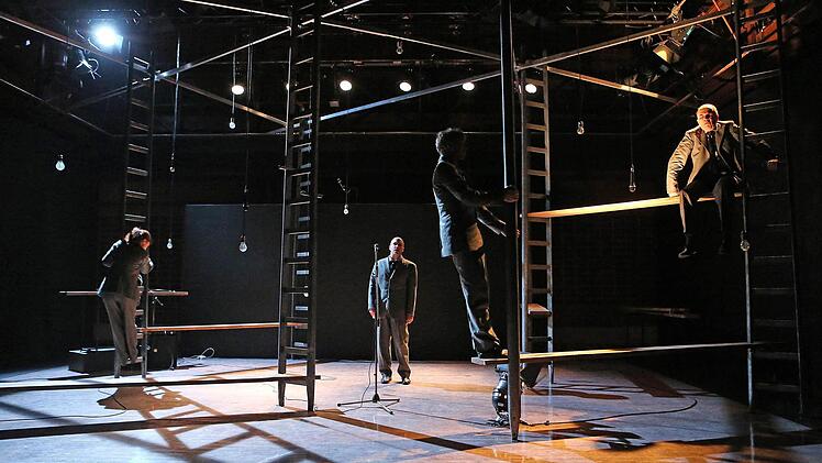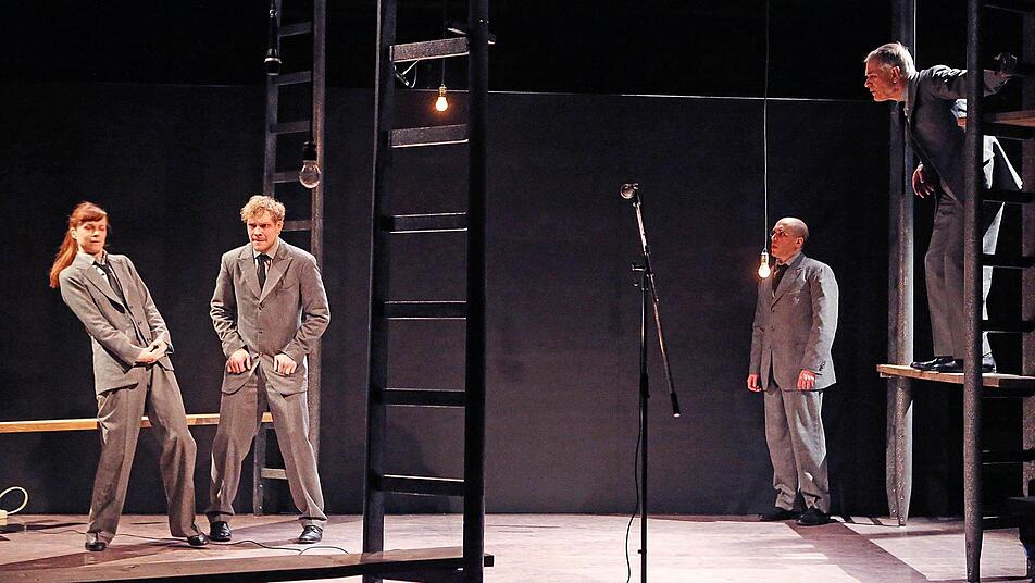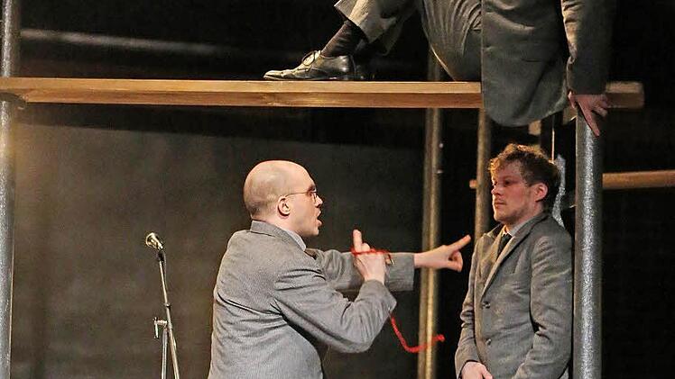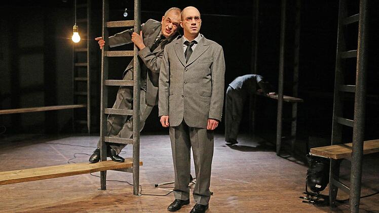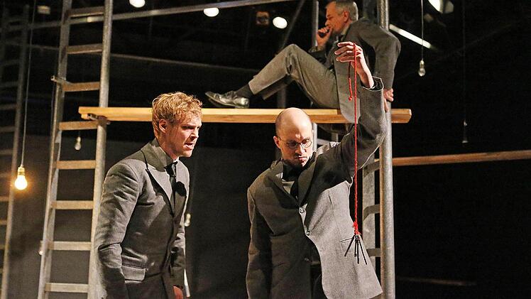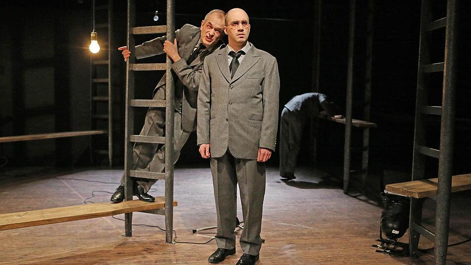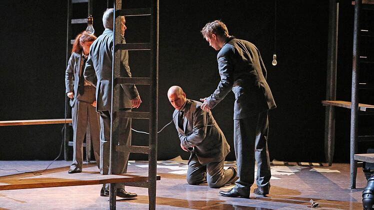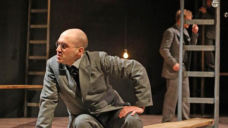Der Weg in den Irrsinn In Till Kuhnerts treffender Bühnenszenerie führen Leitern, Gestänge, nackte Glühbirnen den unbescholtenen Bankprokuristen Josef K., der an seinem 30. Geburtstag verhaftet wird und einen "Prozess" zu durchlaufen hat, ohne je zu erfahren warum, in die staubigen Kanzleigänge eines "Gerichts". Das agiert hinterhältig und verborgen vor der Öffentlichkeit auf den "Dachböden" der Gesellschaft und des Bewusstseins. "Sie haben sich doch nicht schon verirrt?", fragt der Gerichtsdiener süffisant. Tatsächlich gibt K. im verzweifelten Versuch, vorauszudenken und zu verstehen, schon bald selbst die Stichworte für seinen Untergang.